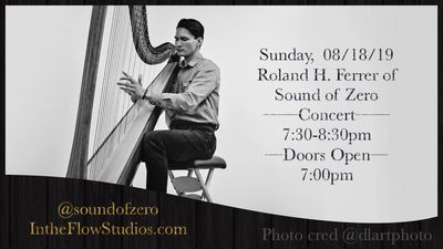 In the Flow Studios will be hosting Sound of Zero’s very first solo concert. Roland H. Ferrer will inaugurate In the Flow Studios performing arts by and sharing his music. While this is primarily a harp concert, there will be a few songs. All songs are child friendly however some are quite emotional!